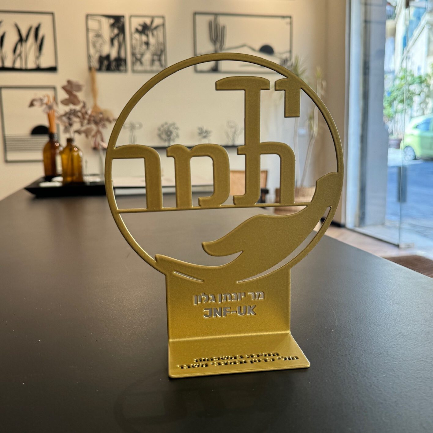 כחלק ממחויבותנו לעיצוב אישי וייחודי, יצרנו עבור קופת חולים כללית חמסה מוזהבת מרהיבה ביופייה. החמסה, סמל המזל וההגנה, עוצבה בקפידה ועשויה מחומרי הגלם האיכותיים ביותר, תוך שימוש בטכניקות ציפוי מתקדמות. התוצאה היא יצירת אמנות מרהיבה המשלבת מסורת וחדשנות, ומעניקה לקופת חולים כללית מתנה יוקרתית ובעלת משמעות.