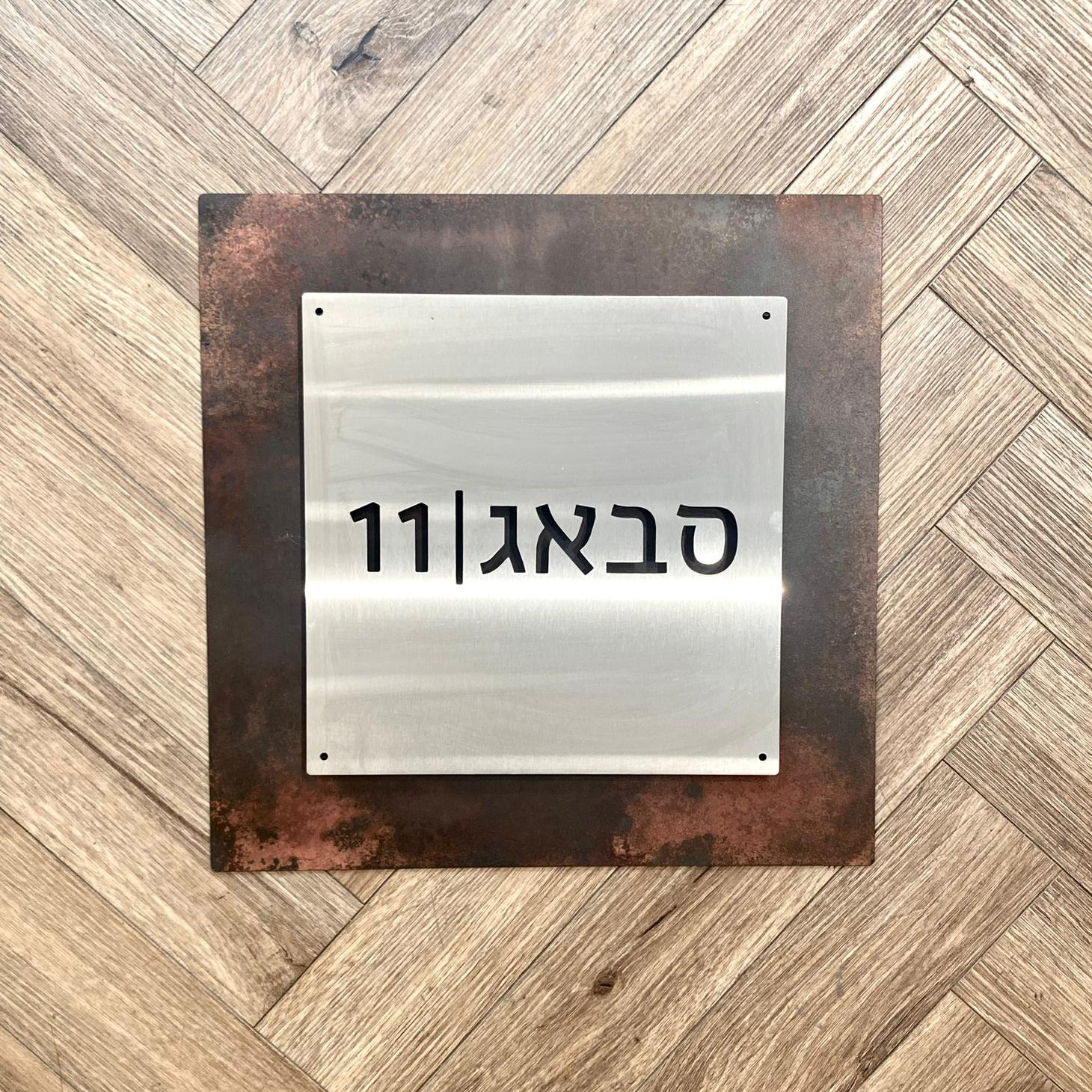 שכבת חזית לבחירה מנירוסטה מוברש או קורטן מוחלד עם חיתוך לייזר של הכיתוב המבוקש.