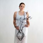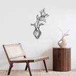יצירת אמנות קיר ייחודית זו לוכדת את היופי והשלווה של דג קוי הצולל אל תוך ואזה אלגנטית. קווי המתאר העדינים של הדג, המשתלבים בטבעיות בצורת הואזה, יוצרים אשליה של תנועה מתמדת והרמוניה מושלמת בין שני העולמות.