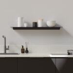 מדף מתכת דק בעיצוב מינימליסטי ואלגנטי.
