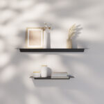 מדף מתכת דק בעיצוב מינימליסטי ואלגנטי.